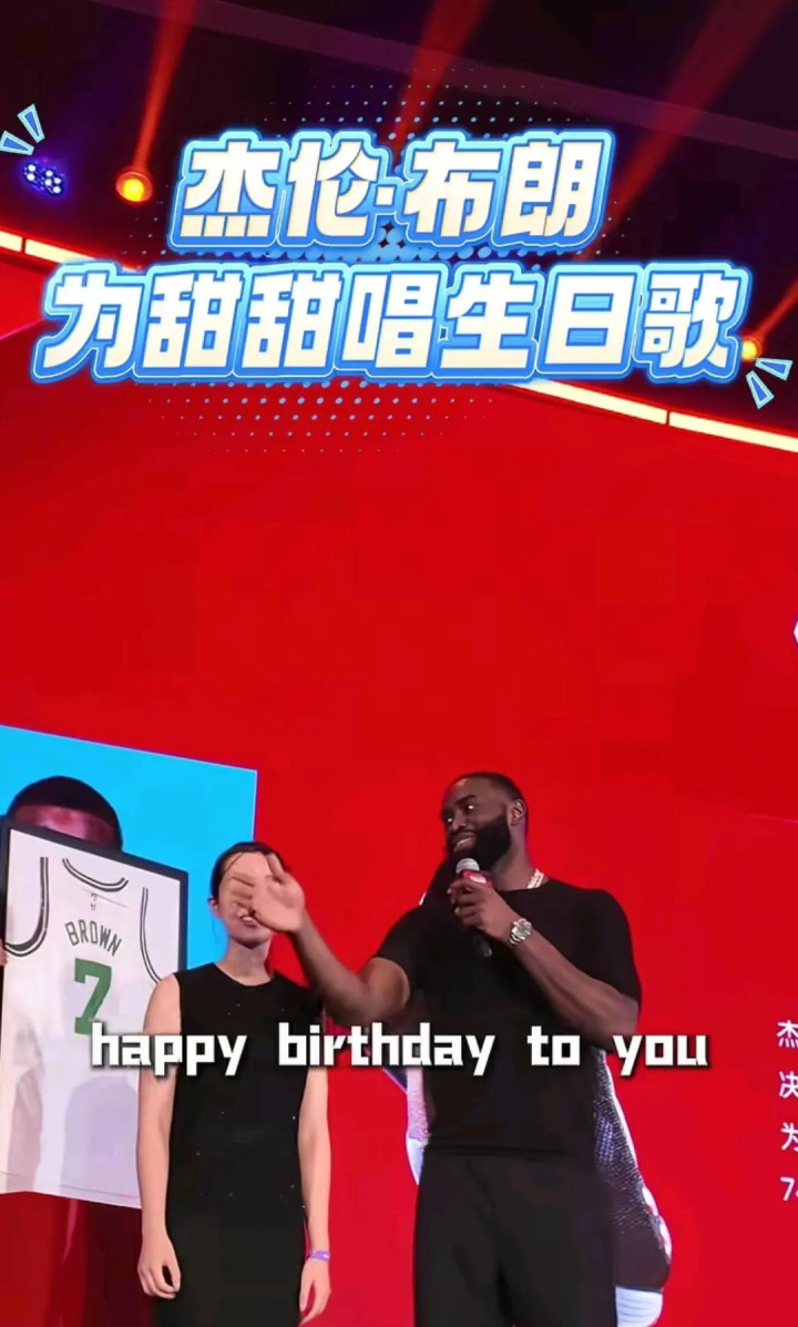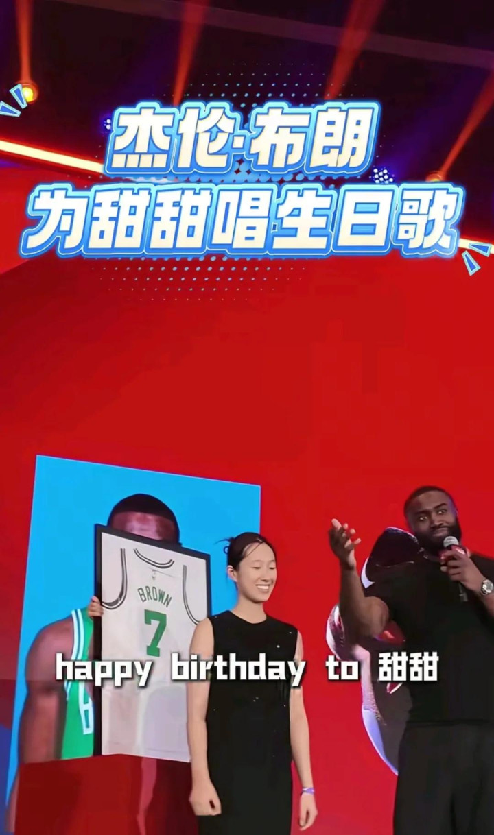 朱军岷在姚基金慈善晚宴上通过慈善助力的方式推介了自己的外甥女,特邀嘉宾杰伦•布朗也在现场,这位美国NBA球队队员并唱起了生日歌,还给了甜甜一个拥抱。